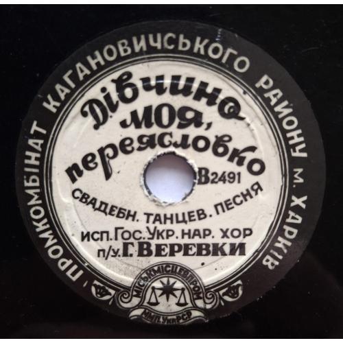 "Дівчина моя, переясловко". Виконавець Державний український народний хор під керівництвом Г. Верьовки