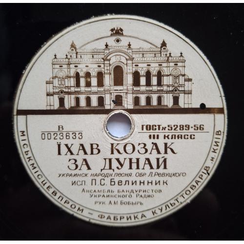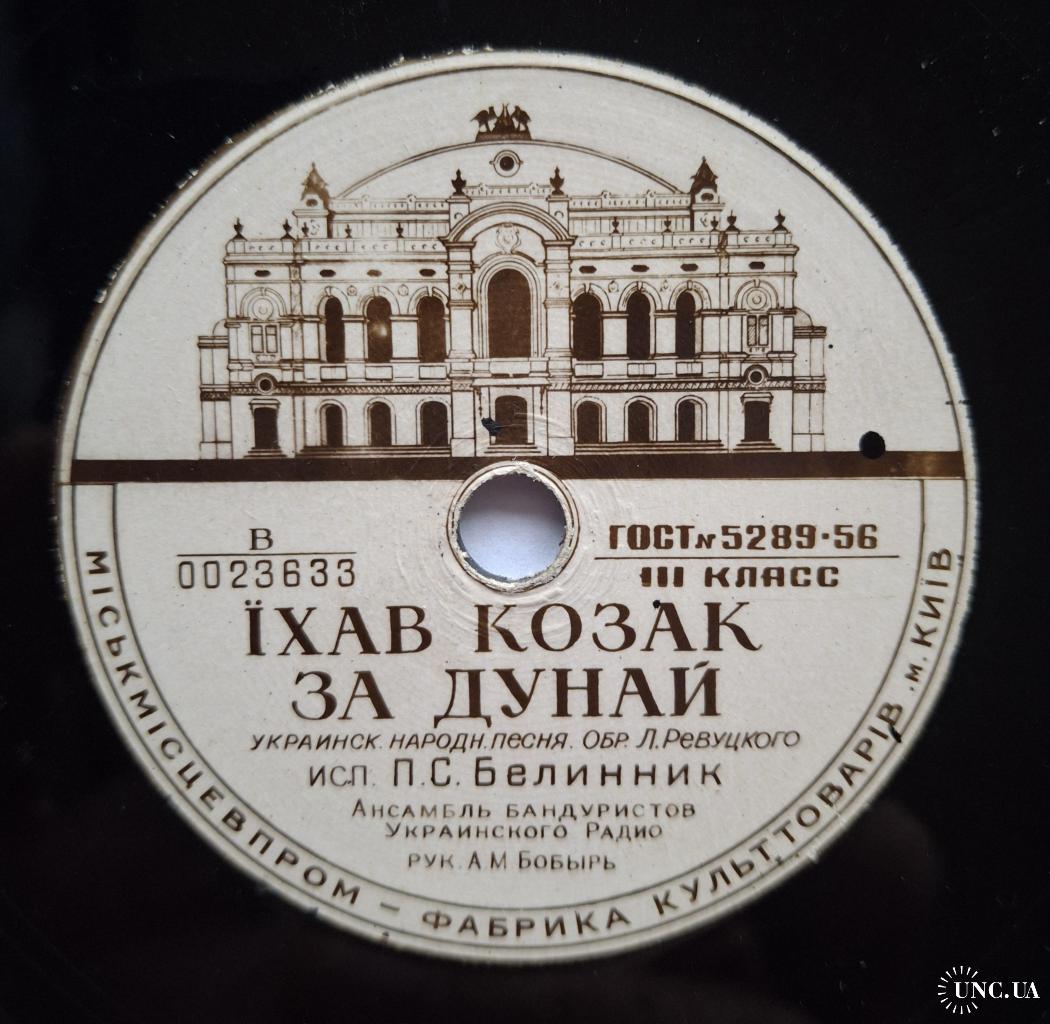 "Їхав козак за Дунай". Украинская народная песня Обработка Л. Ревуцкого Исполнитель П. С. Белинник. Ансамбль бандуристов украинского радио руководитель А. М. Бобырь.