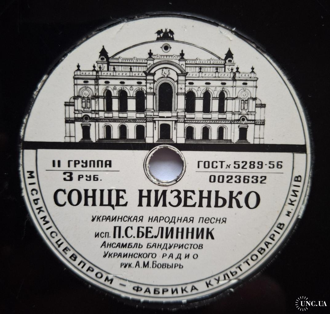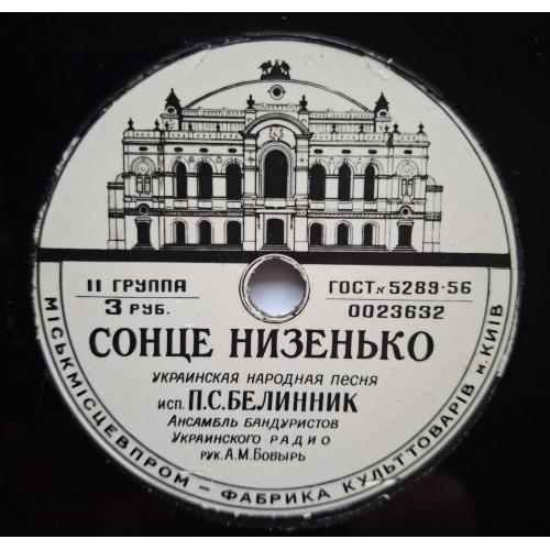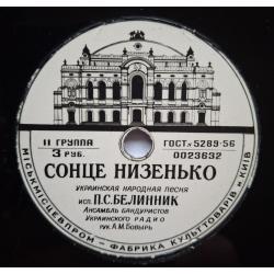"Сонце низенько" Украинская народная песня. Исполнитель П. С. Белинник. Ансамбль бандуристов украинского радио руководитель А. М. Бобырь.