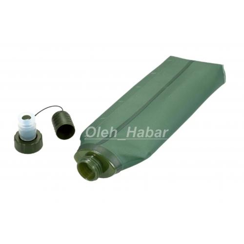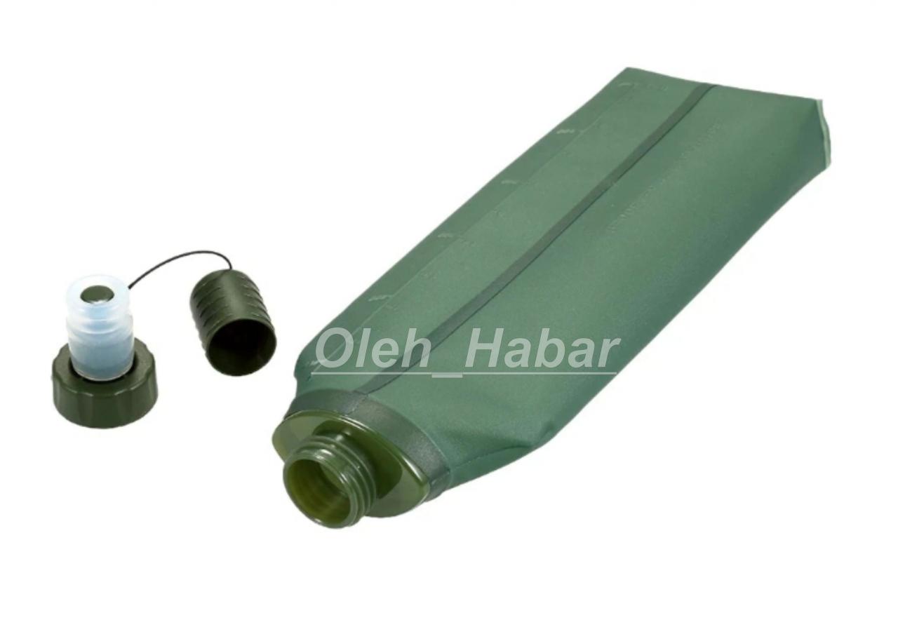 М'яка силіконова фляга обсягом 500 мл. Всередині є мірні поділки. Широка шийка дає змогу додати у флягу лід або фрукти. Обладнана спеціальним клапаном, який запобігає витіканню води під час тренування. Призначена для багаторазового використання.