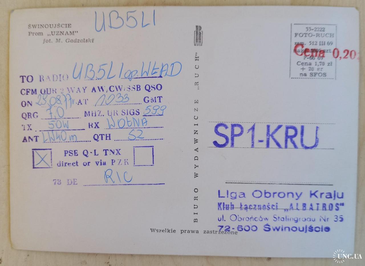 1961-1980Изд-во «Рух». Заполнена как QSL карточка (радиооткрытка) с позывным сигналом коллективной радиостанции связного клуба «Альбатрос» и данными радиообмена в эфире. Открытка черно-белая. Слегка замяты нижние уголки. Состояние открытки хорошее.