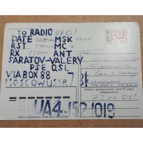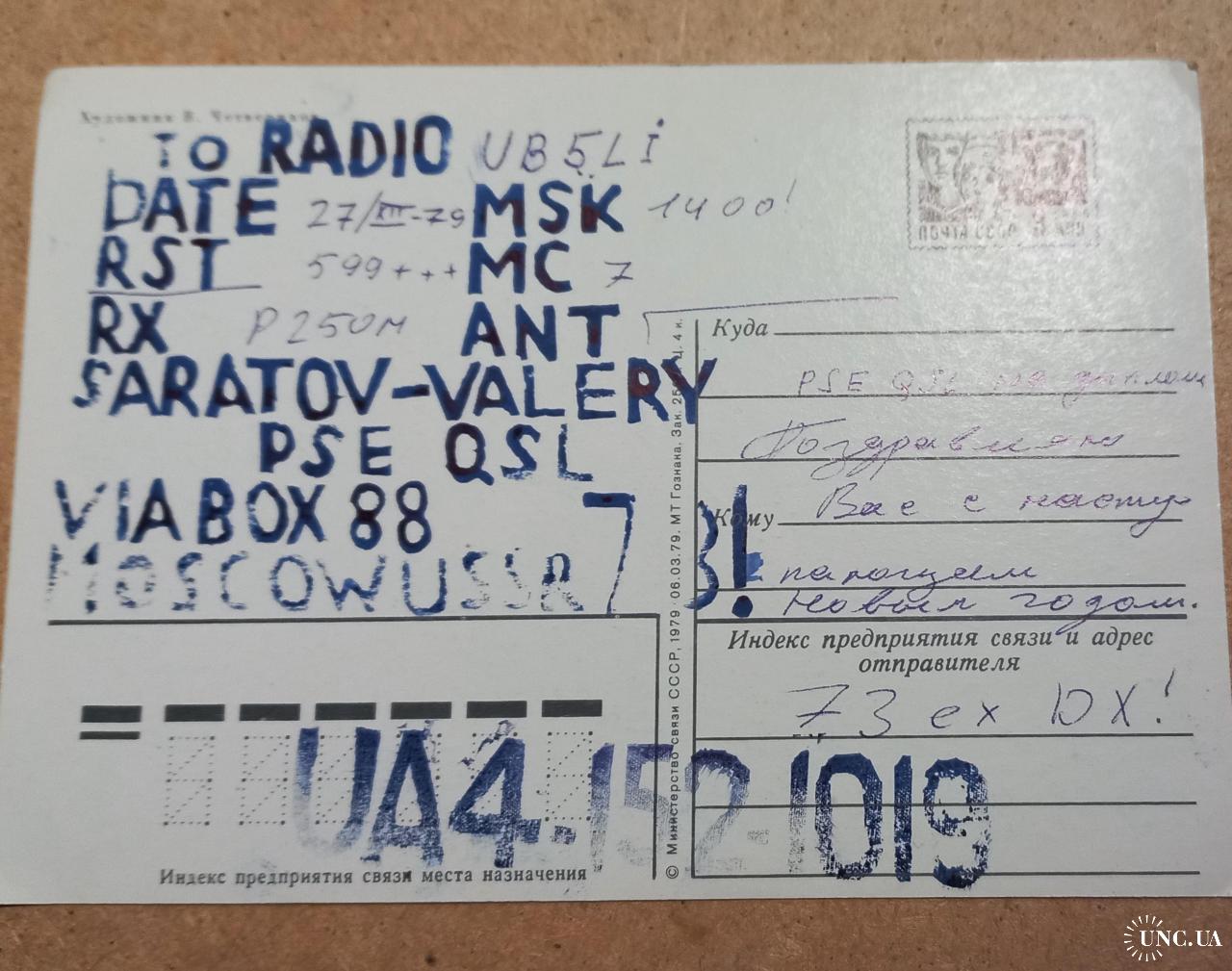 1961-1980Почтовая открытка. Художник В. Четвериков. 1979 г.Подписана штампами и данными радиообмена (QSL-карточка). Состояние хорошее.