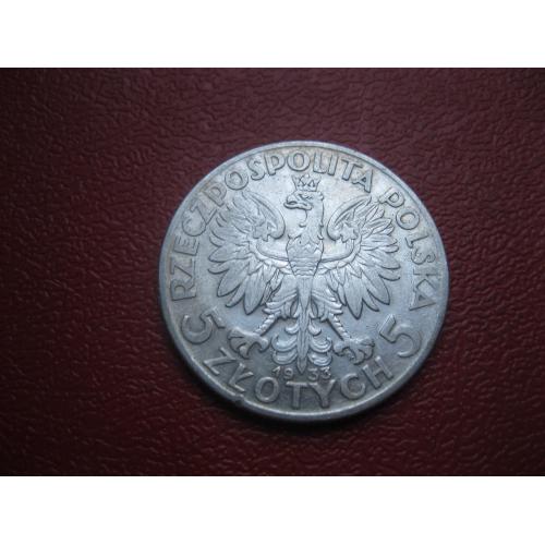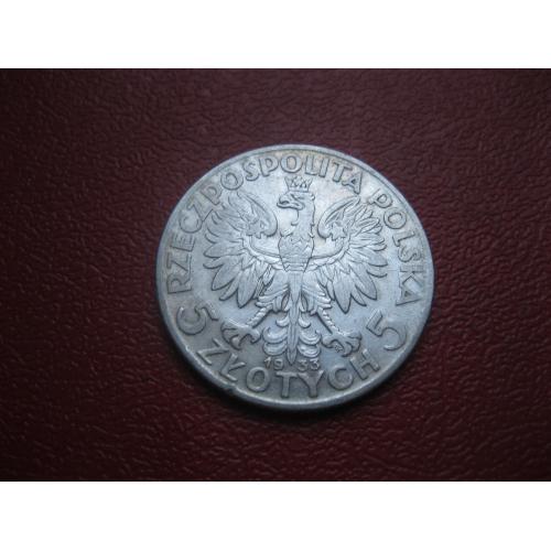 OriginalПольша 5 злотых 1934 г. "Голова полонии" . Сохран .Серебро 750 проба. Оригинал.. Хороший сохран. На оккупированные территории не отправляю.. Состояние по фото