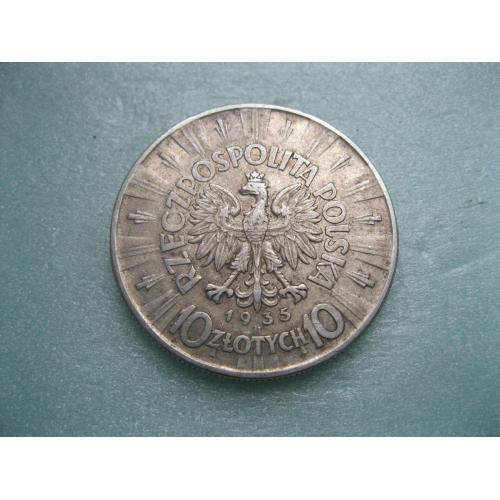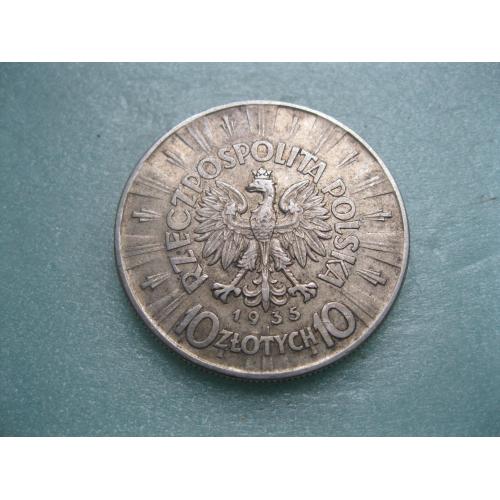 OriginalПольща. 10 злотих. 1935 рік. "Юзеф Пілсудський (JÓZEF PIŁSUDSKI)". Серебро 750 проба. Оригинал.Отличный сохран ! Состояние по фото