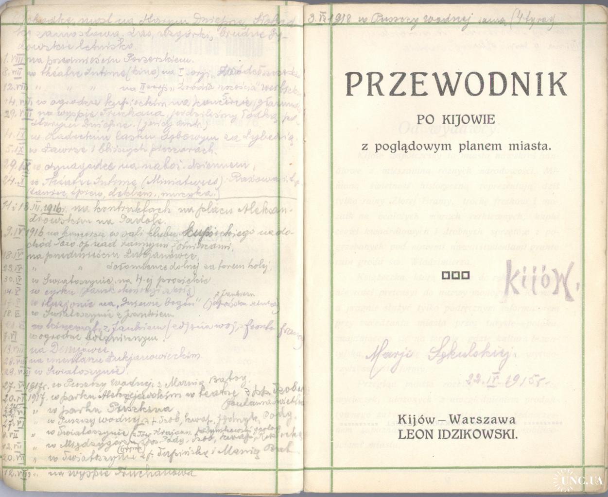 PRZEWODNIK po Kijowie z poglądowym planem miasta. Kijów-Warszawa [1913]. L. Idzikowski.