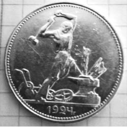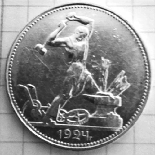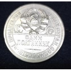 OriginalПолтиник СРСР 1924 рік (П.Л.), срібло 900 проби, вага монети: 9.95 гр. Стан VF