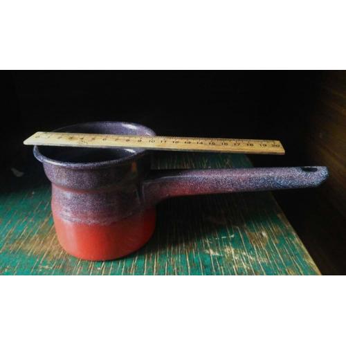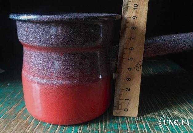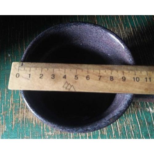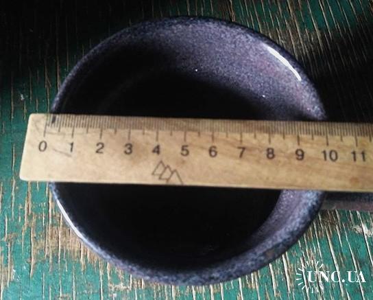 Высота 9,5 см дно Д=9 см, верх 10,5 см. Тяжелая, вес 326 грамм