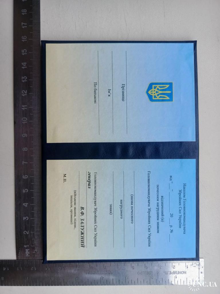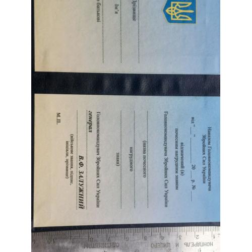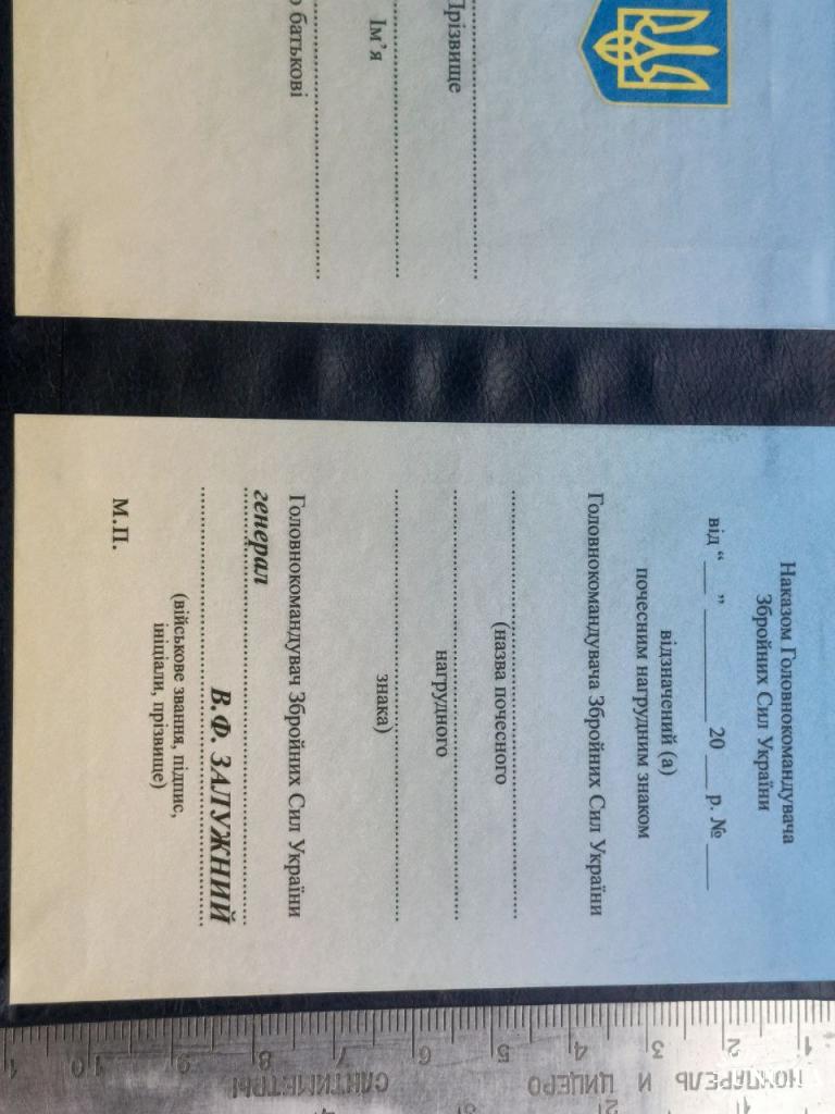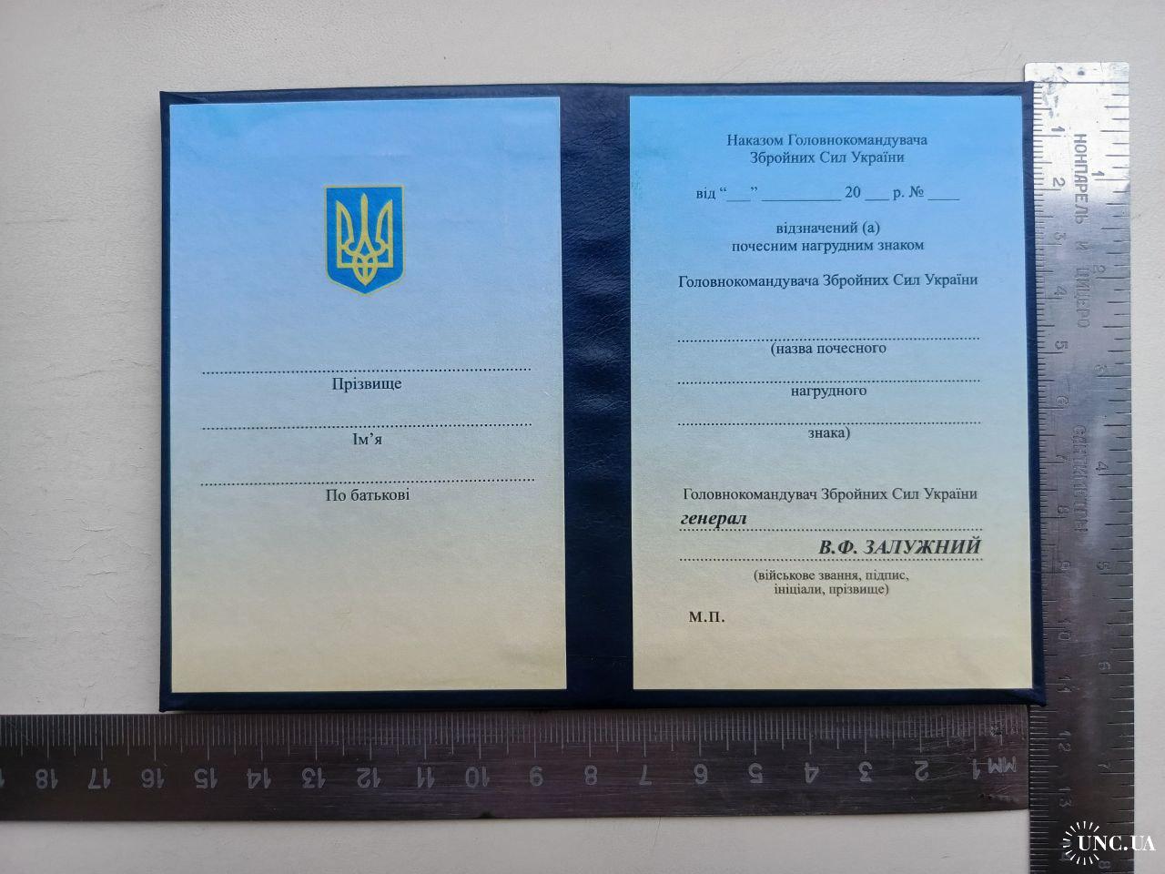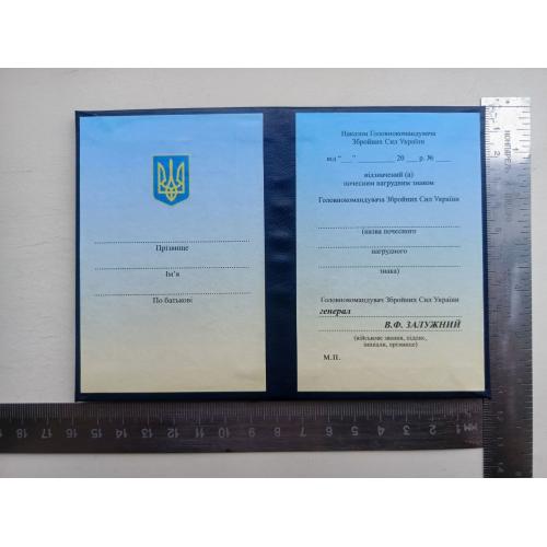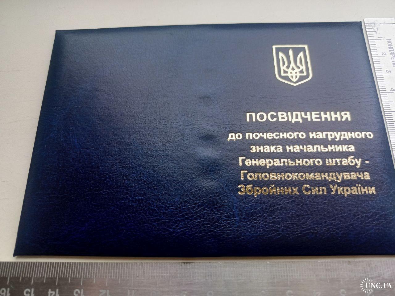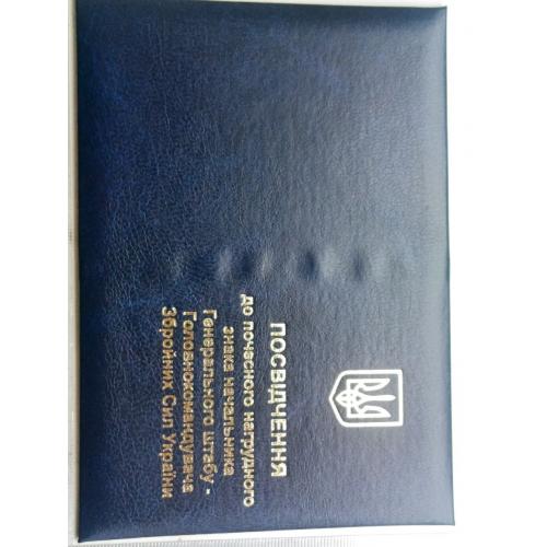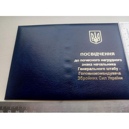 2021-....Посвідчення до почесного знака начальника генерального штабу - головнокомандувача збройних сил України.