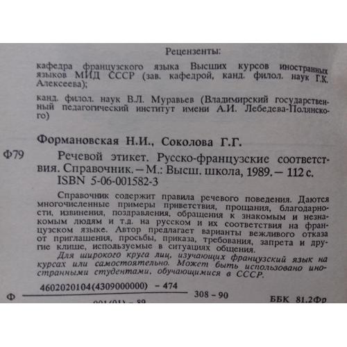 Н.И. Формановская. Г.Г. Соколова. Издательство "Высшая школа" М. 1989 г.