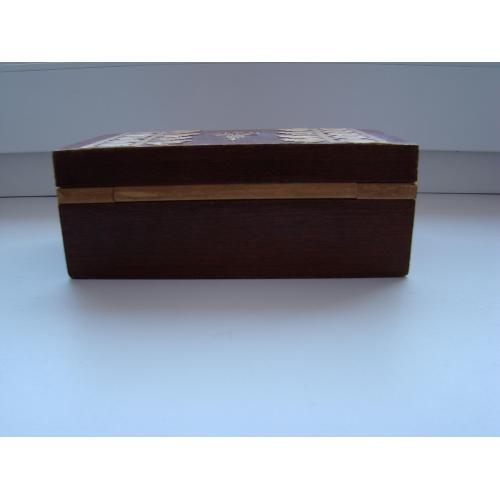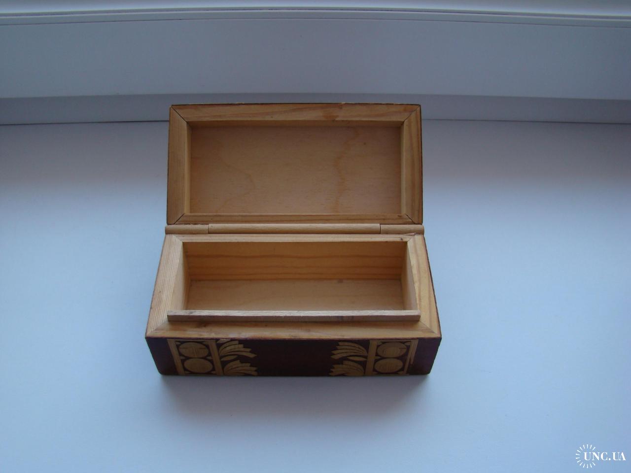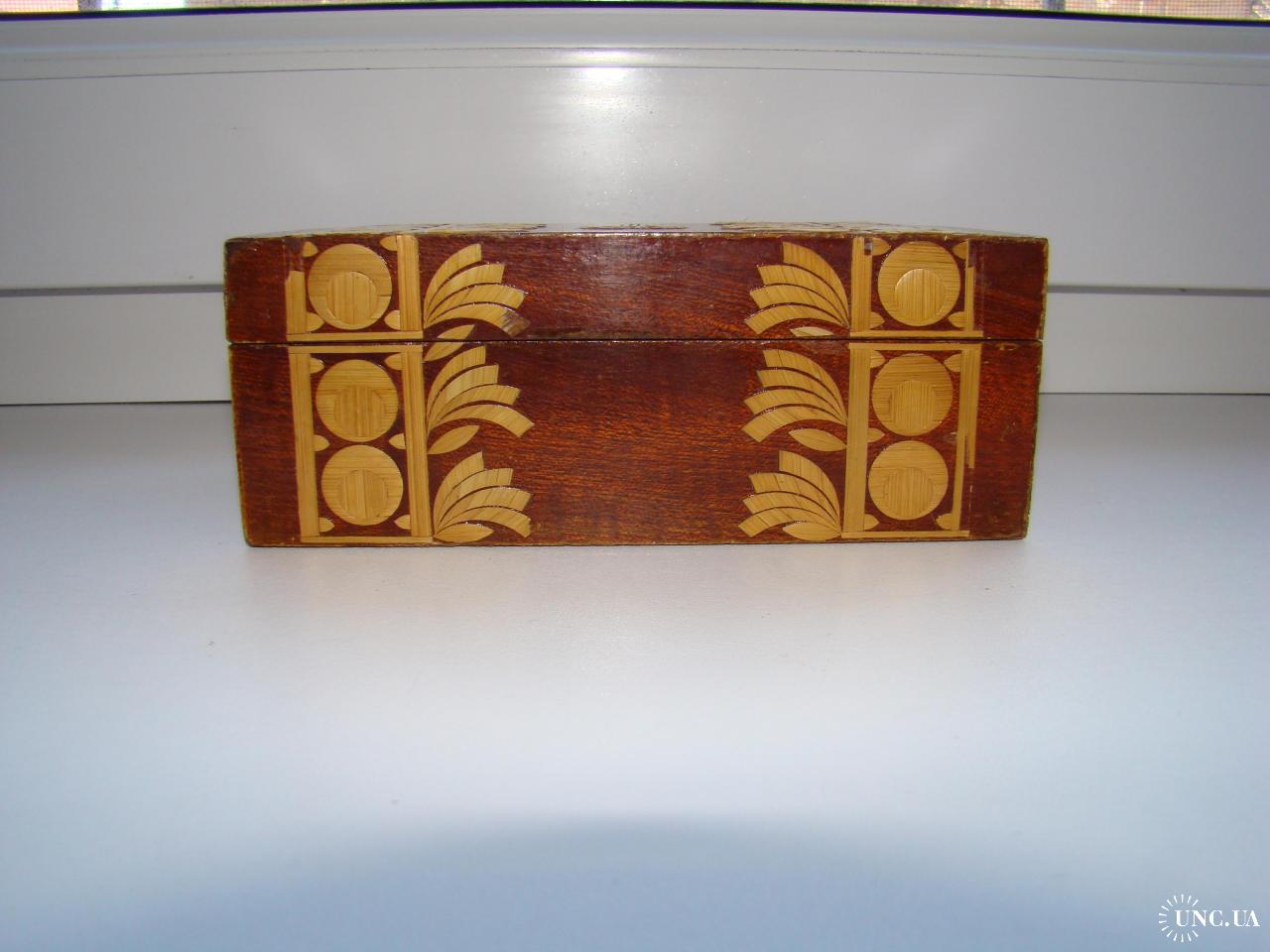 1961-1980Шкатулка в хорошем состоянии, инкрустация соломкой. Размеры: длина 15 см, ширина 7,5 см, высота 6 см. В остальном все как на фото.
