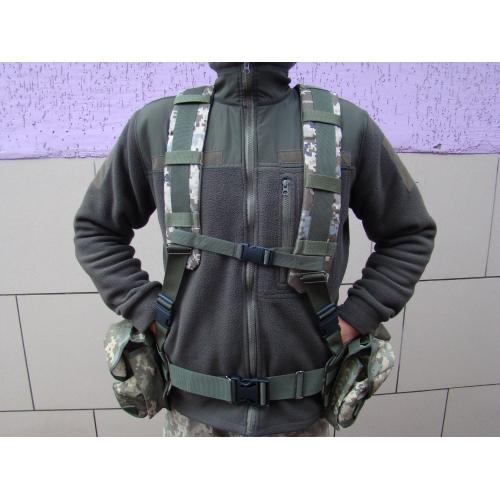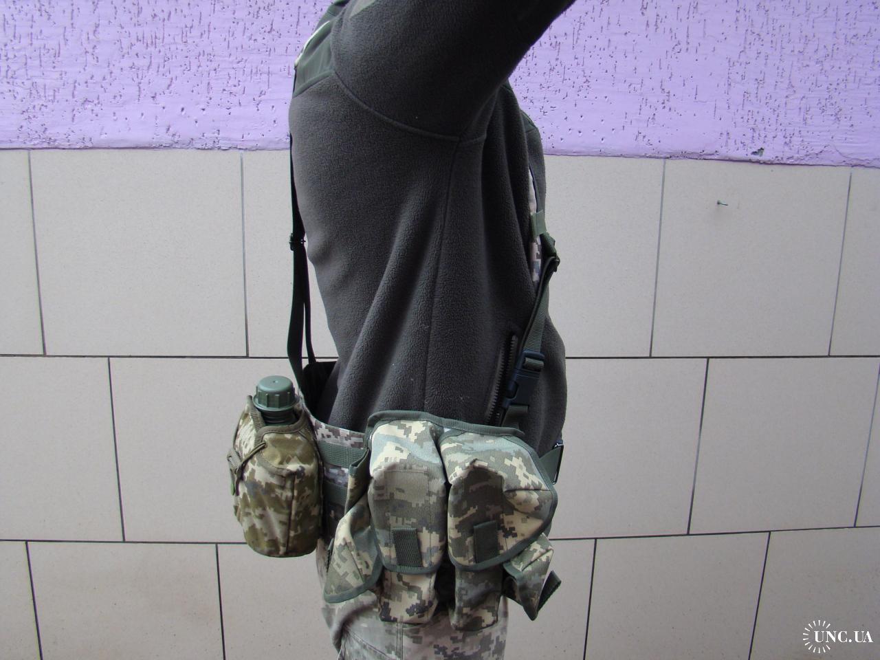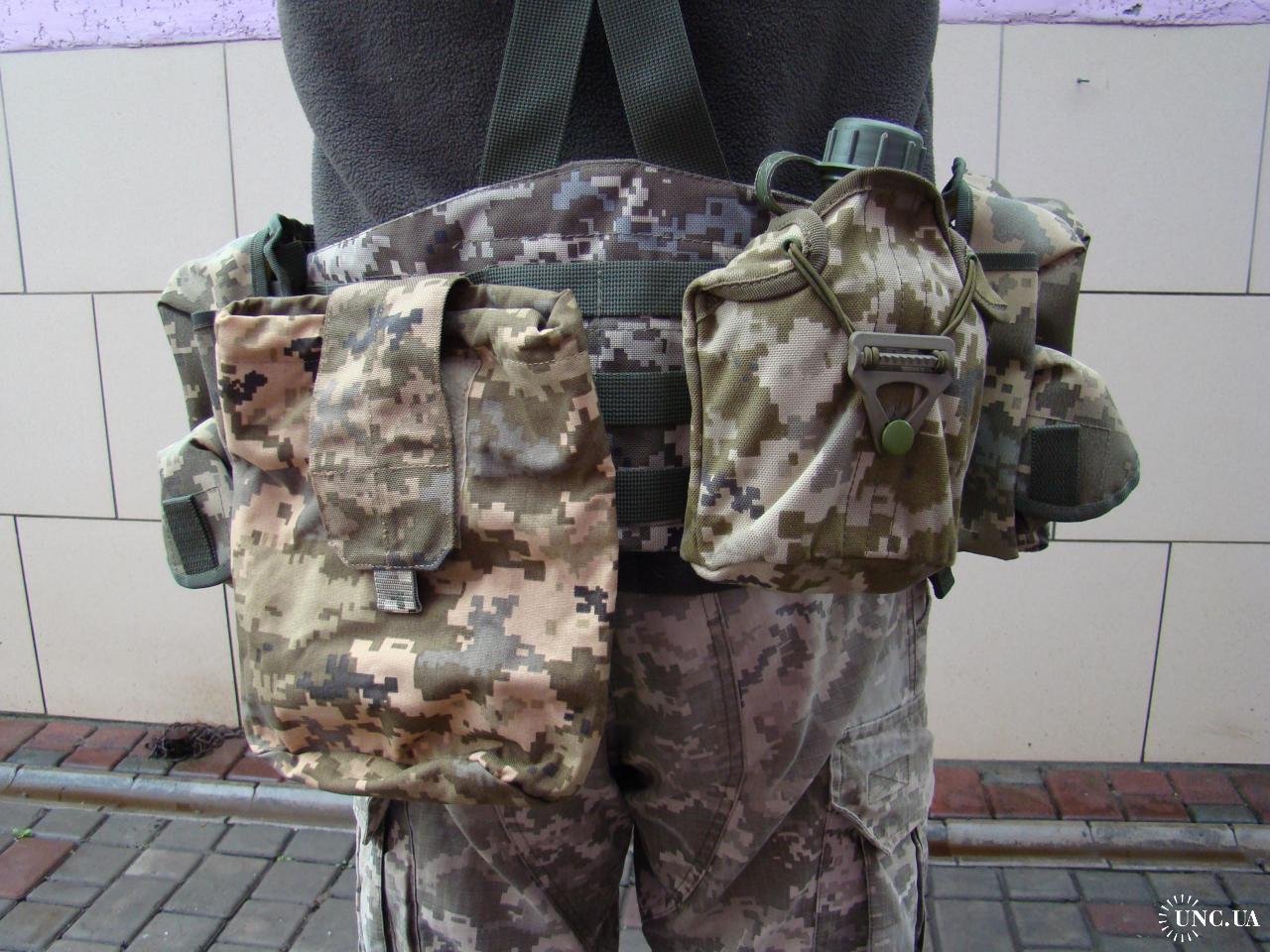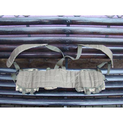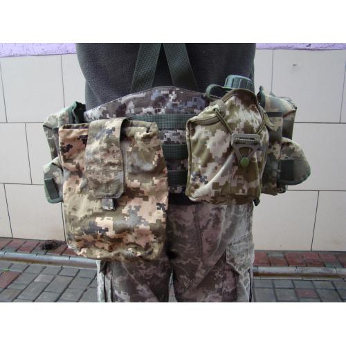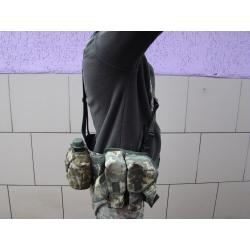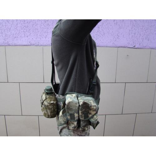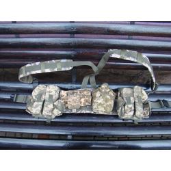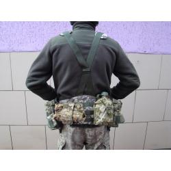 after 1991Новый, по назначению не использовался. На поясе 10 подсумков + 2 отсека под тактический нож и фонарик. Из них 4 под магазины АК на 8 магазинов, один подсумок сброса (для отработанных магазинов АК) и четыре подсумка для гранат типа Ф-1 или РГД-5, а также подсумок с флягой на 1 литр. Отличное качество. В остальном все как на фото.