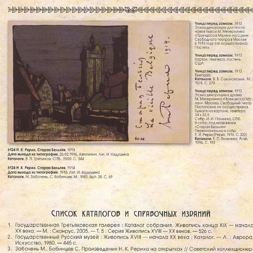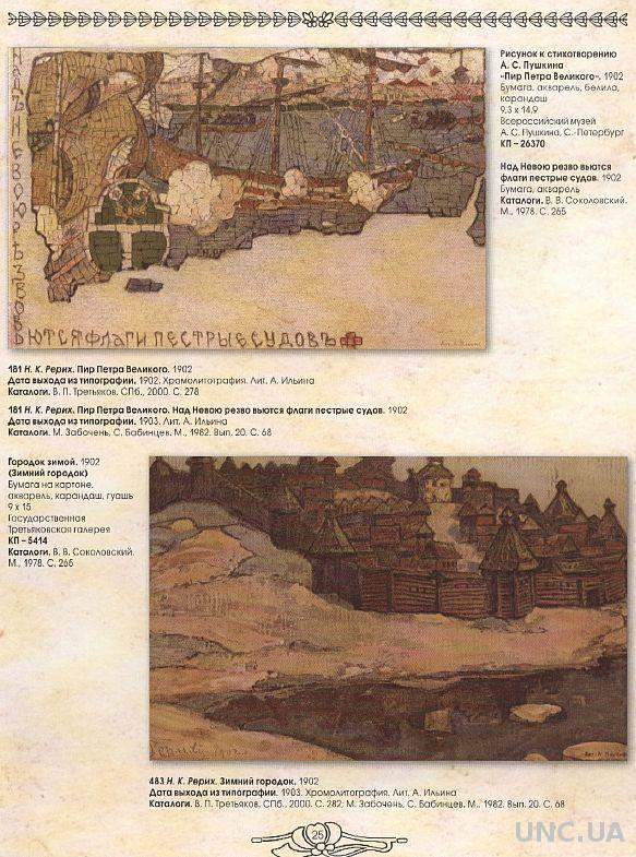 Описание: Полный альбом-каталог произведений знаменитого русского художника Н.К.Рериха (1874-1947), изданных на открытых письмах Общиной Святой Евгении (1902-1916), из коллекции Одесского Дома - Музея имени Н.К.Рериха).