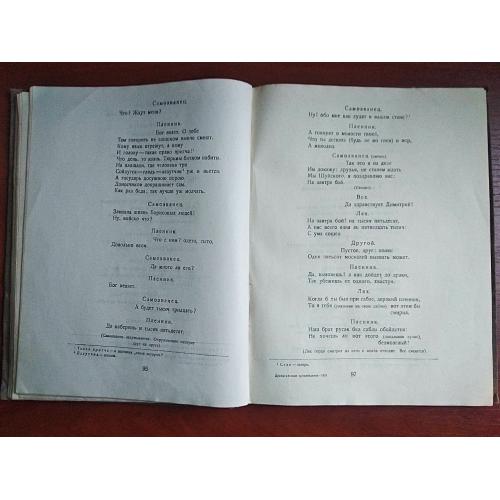 Отдельное издание всех драматических произведений Александра Сергеевича Пушкина содержит полный набор пушкинских драм, созданных в различные периоды его творчества. Книга включает исторические трагедии, психологические драмы и философские произведения Пушкина: "Борис Годунов" — его великую историческую трагедию о смутных временах, "Скупой рыцарь" — драму о разрушительной власти золота, "Моцарт и Сальери" — трагедию о гении и зависти, "Каменный гость" — новую версию легенды о Дон Жуане, "Пир во время чумы" и другие драматические шедевры поэта. Издание - значимый памятник советского книгопечатания конца 1930-х годов.