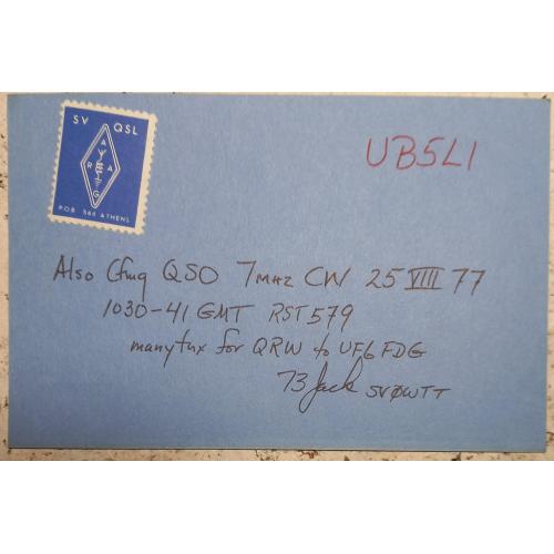 На лицевой стороне размещен позывной-сигнал (заметьте что часто радиолюбители, чтобы не путать букву О и цифру 0 перечеркивают последнюю косой чертой) и данные радиообмена в эфире. Также перечислены радиолюбительские дипломы. Причем учредителями этих дипломов являются всего 2 страны: США и СССР. В случае СССР-это диплом R-100-O, за установление радиосвязей со 100 областями Советского Союза.Слева и справа от позывного расположены эмблемы радиолюбительских обществ США и Греции. Судя по имени оператора. он американец. На обратной стороне карточки наклеена специальная марка для пересылки карточки по всему миру. О локации Чарльза - Афинах можно говорить бесконечно. Это столица и крупнейший город Греции, с населением около 3 млн. человек, политический, культурный и экономический центр страны.). Один из древнейших городов мира (более 3400 лет истории), названный в честь богини мудрости Афины. Известен своими античными памятниками (Акрополь, Парфенон), средиземноморским климатом и ролью колыбели демократии. Данная карточка для любознательных коллекционеров представляет виртуальную возможность ощутить аутентичность этих мест. Ведь она прислана именно оттуда. Карточка без дефектов. Состояние отличное.