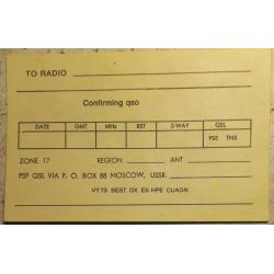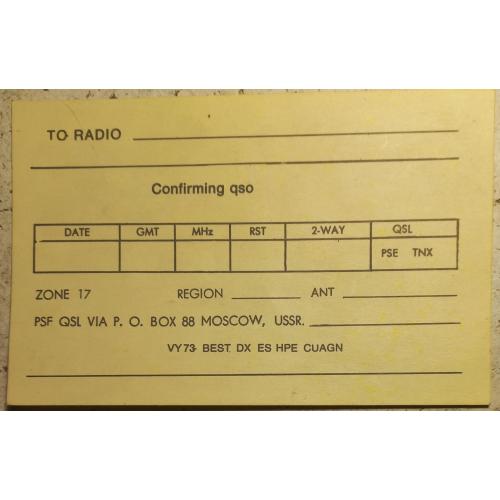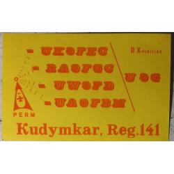 Выездная радиоэкспедиция(DX-pedition,на радиожаргоне) радиолюбителей из Перми в Коми-Пермяцкую столицу. Вылет –самолетом. Экипировка: связная аппаратура, складные антенны, и запас энтузиазма и романтики. Кудымкар — исторический центр коми-пермяков, основанный, по легенде, богатырем Кудым-Ошем. Название переводится с коми как «городище Кудыма» (возле реки Кува). Известен с XVI века, в 1938 году получил статус города. Является административным центром Коми-Пермяцкого округа, играя ключевую роль в сохранении коми-пермяцкой культуры и языка. Географически находится в Предуралье, характеризуется умеренно континентальным климатом, лесистой местностью (тайга). Известен тем, что в 1816 году там был спущен на воду один из первых в России пароходов, а в 1838 году построен один из первых паровозов. Одним из первых завод был и по выпуску чугуна, стали, снарядов во время войны 1812 года. Газовое освещение в его цехах появилось раньше, чем в Петербурге. Для любознательных коллекционеров карточка представляет виртуальную возможность ощутить аутентичность этих мест, ведь она прислана именно оттуда. Карточка без дефектов. Состояние отличное.