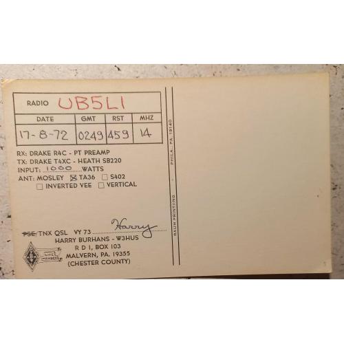 Этот оператор из Малверна — пригорода Филадельфии. Малверн находится в округе Честер и является одним из лучших мест для жизни в Пенсильвании .Обычно западные радиолюбители называли шутливо свои любительские апартаменты словами RADIO SHACK (радиохижина). На фото мы видим и фабричную аппаратуру и явно самодельные конструкции (например усилитель мощности передатчика на1 кВт, на верхней полке).У советских же радиолюбителей в те годы была исключительно самодельная техника, или (в лучшем случае) узлы и блоки списанной военной связной аппаратуры.Например у меня в качестве усилителя мощности был передатчик РСБ-5 мощностью около 200 Вт из гражданского самолета, а для приема использовался связной военный радиоприемник «Крот-М», производства харьковского радиозавода. Большинство советских любителей находились в постоянных поисках всего. что было связано со связной техникой, многое дорабатывали самостоятельно, или собирали собственные экспериментальные конструкции и антенные устройства. Сочетание конструкторского творчества и захватывающих контактов в эфире соэдавали ни с чем не сравнимую радиолюбительскую романтику. Денег это занятие не приносило, но эстетическое удовольствие ставило наше радиолюбительское братство на ступеньку выше остальной «серой массы обывателей» как нам казалось. Эфир позволял проникать в любые уголки нашего прекрасного и разнообразного мира, преодолевая многочисленные запреты отголосков «железного занавеса».