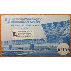 На лицевой стороне фото аэропорта, также известного как BWI, — гражданского аэропорта, обслуживающего коммерческие авиаперевозки населённого района конгломерата городов Балтимор и Вашингтон.Здесь же стоит штамп позывного-сигнала американца и его локация, а именно города Боуи, находящегося в округе Принс-Джордж, Мэриленд. Боуи вырос из маленькой железнодорожной станции до крупнейшего муниципалитета в округе Принс-Джордж, Находится в центральном Мэриленде и является восточным пригородом Вашингтона. Население примерно 58тыс. Обратная сторона традиционно содержит данные радиообмена в эфире. Карточка без дефектов. Состояние идеальное.
