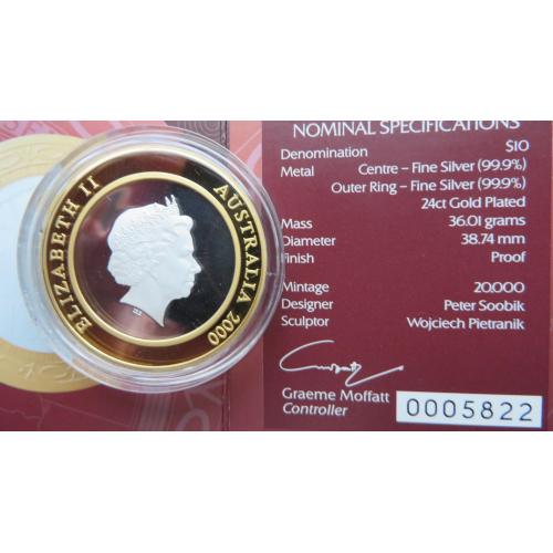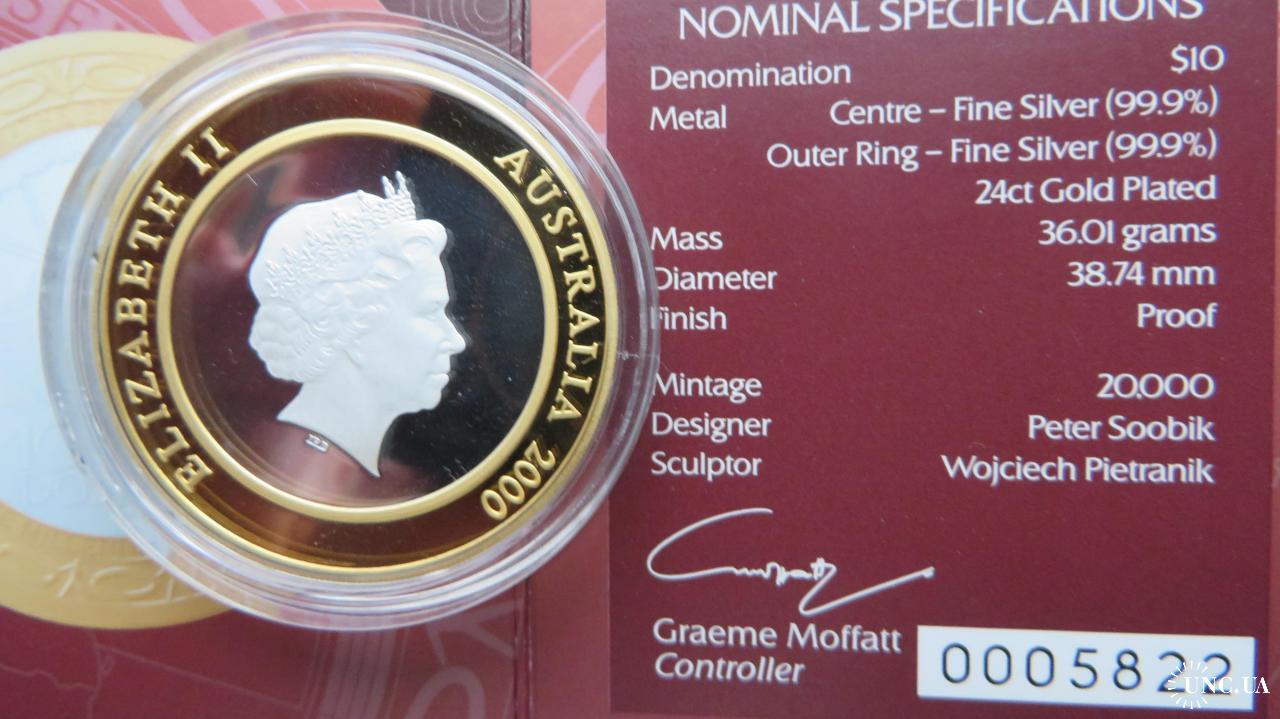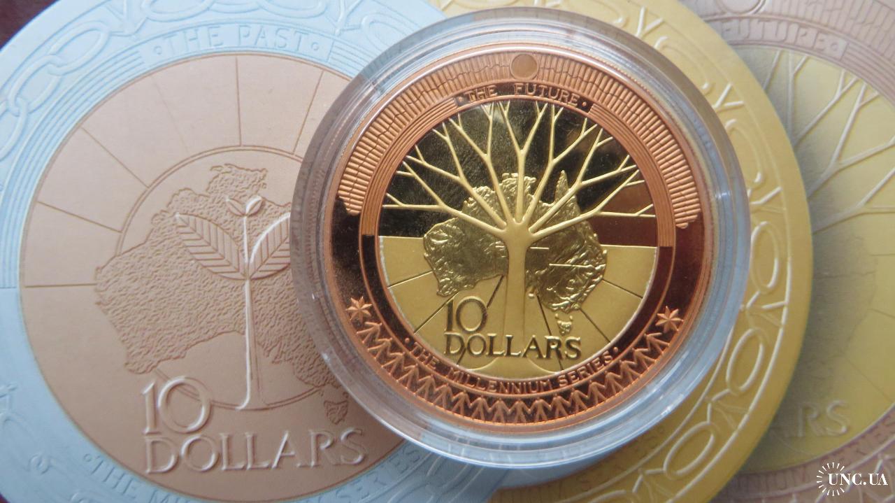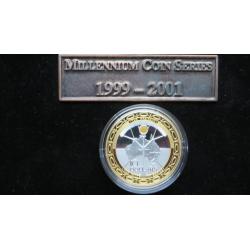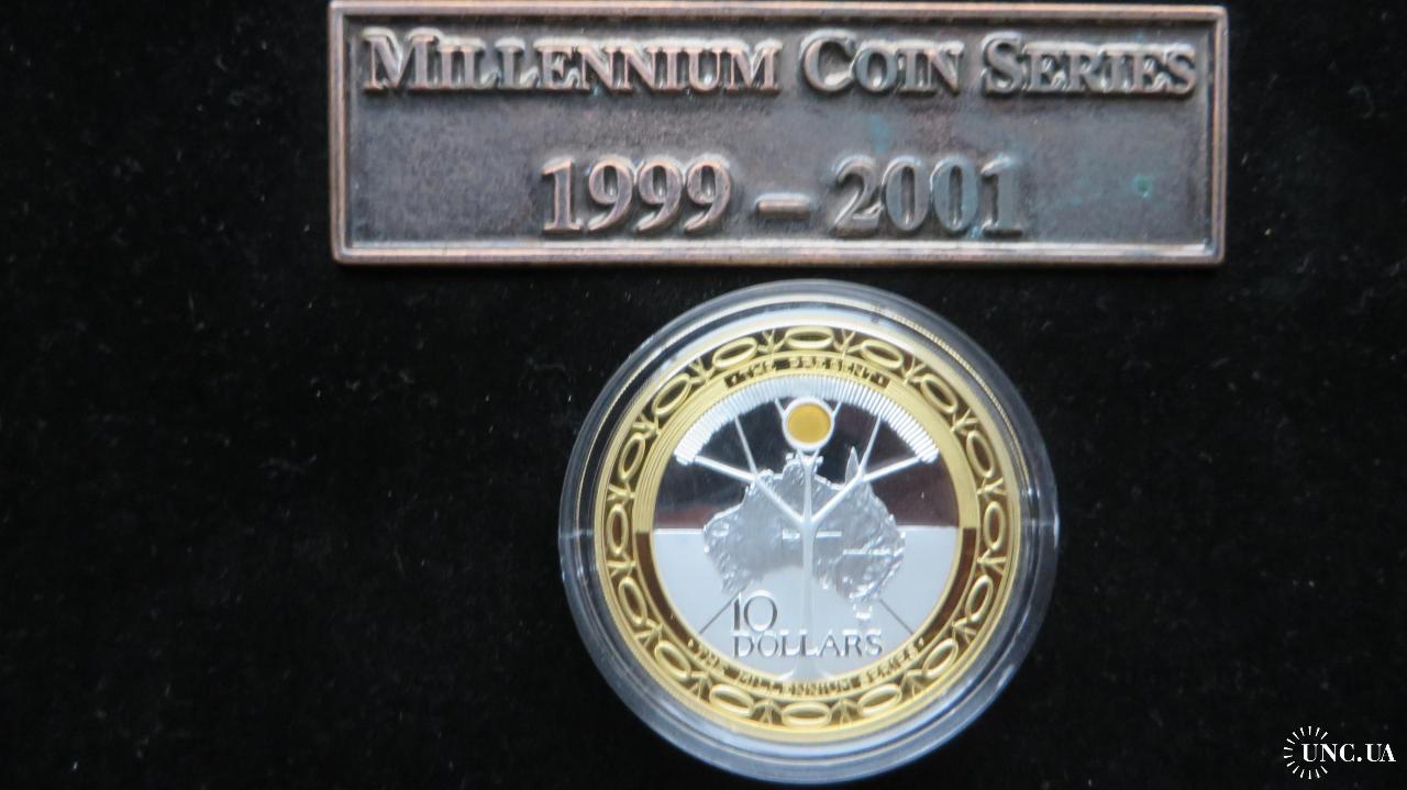 OriginalРІДКІСТЬ ОДНАКОВІ НОМЕРИ Австралія 1999-2001 $10 Тисячоліття Срібло 999 вага 102гр позолота PROOF
