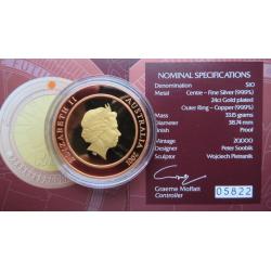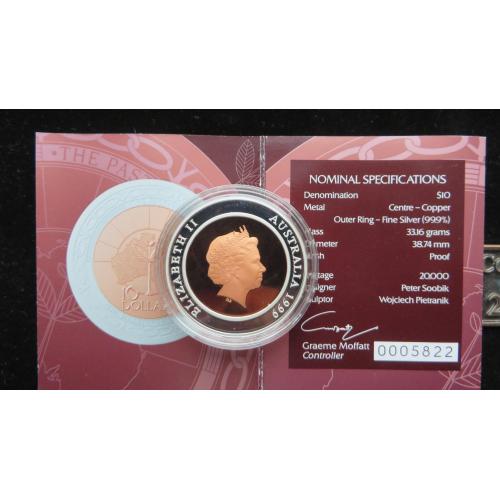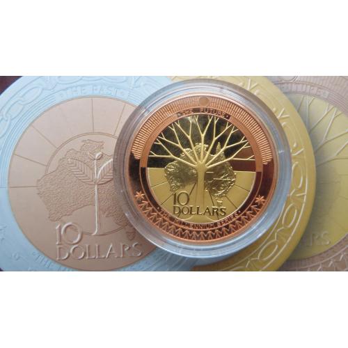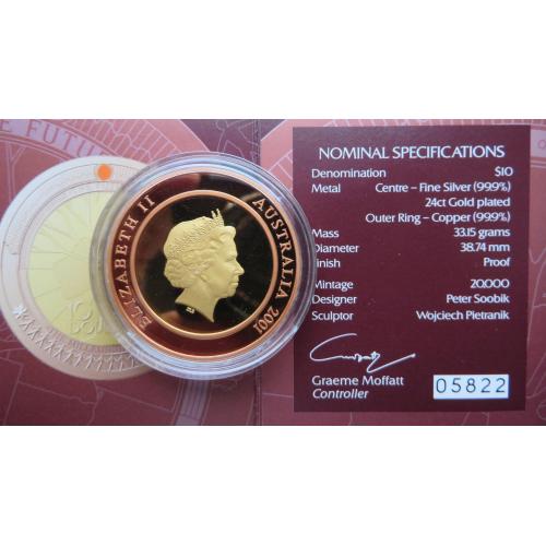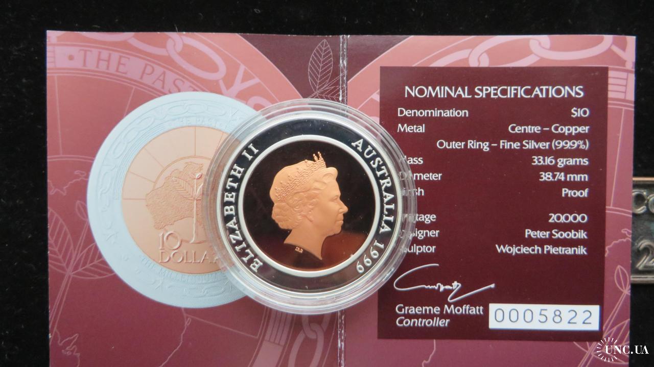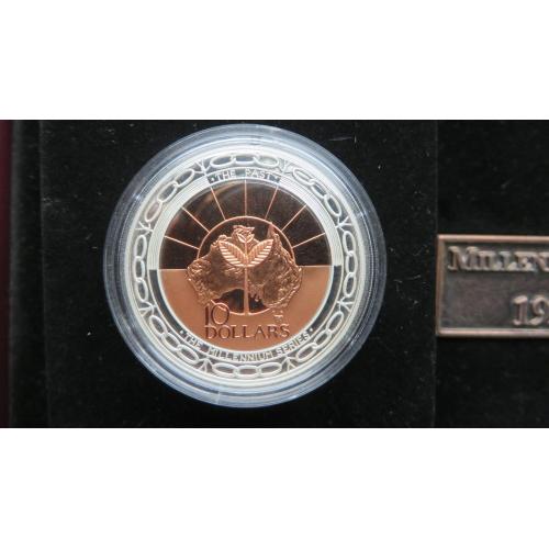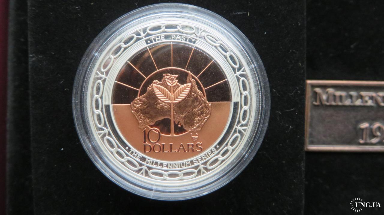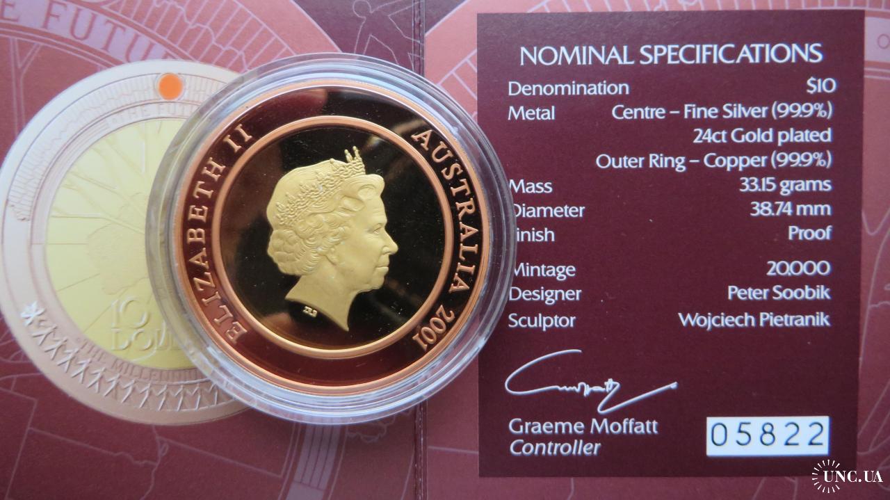 OriginalРІДКІСТЬ ОДНАКОВІ НОМЕРИ Австралія 1999-2001 $10 Тисячоліття Срібло 999 вага 102гр позолота PROOF
