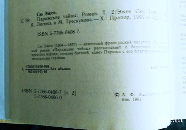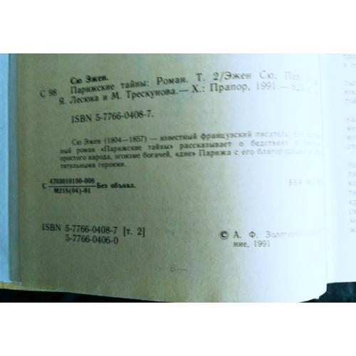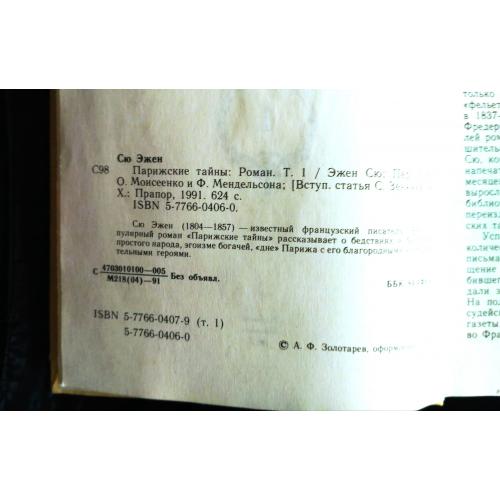 Эжен Сю. Парижские тайны. Роман. 1991 г. НОВАЯ