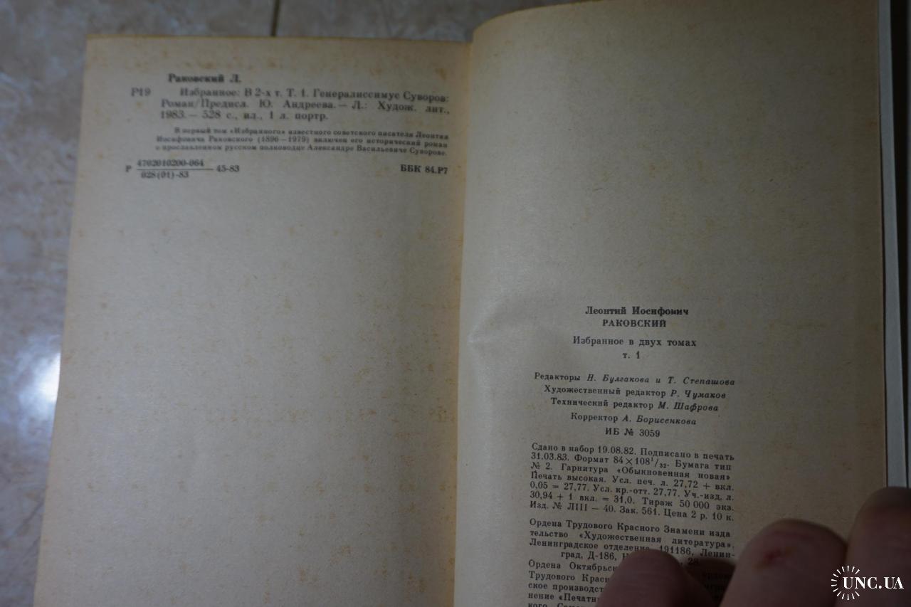 В первый том ``избранного`` известного советского писателя Леонтия Иосифовича Раковского (1896 - 1979) включен его исторический роман о прославленном русском полководце Александре Васильевиче Суворове. Во второй том ``Избранного`` Леонтия Раковского включены его известный роман о талантливом флотоводце Федоре Ушакове, а также историческая повесть о жизни и деятельности русского писателя-декабриста Александра Бестужева-Марлинского.