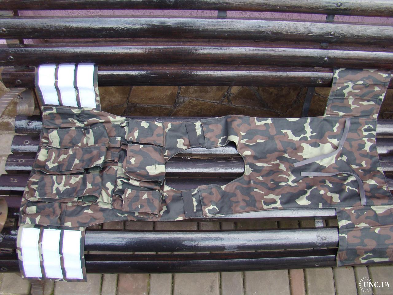 after 1991Жилет фабричного производства. Новый, по назначению не использовался. На жилете 8 подсумков, а также имеется крепление (нашивка) для переноски тактического ножа или фонарика. Высота и объем регулируется с помощью крепких (надежных) липучек. В остальном все как на фото.