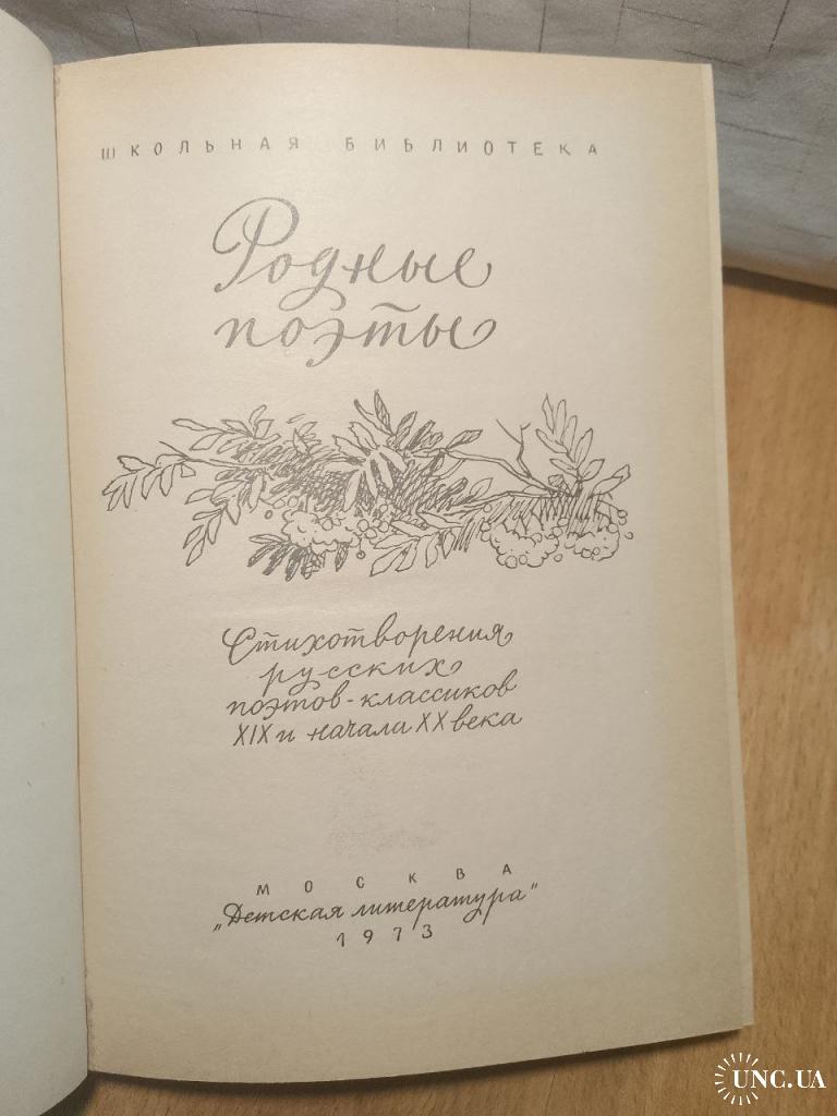 Родные поэты. Стихотворения русских поэтов классиков XIX - начала XX века. Серия Школьная библиотека. Издательство: «Детская литература». 1973 год. Повреждение корешка