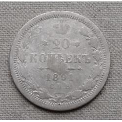 OriginalРоссия 20 копеек, 1891 г СПБ-АГ серебро