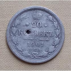 OriginalРоссия 20 копеек, 1901 г СПБ ФЗ, серебро