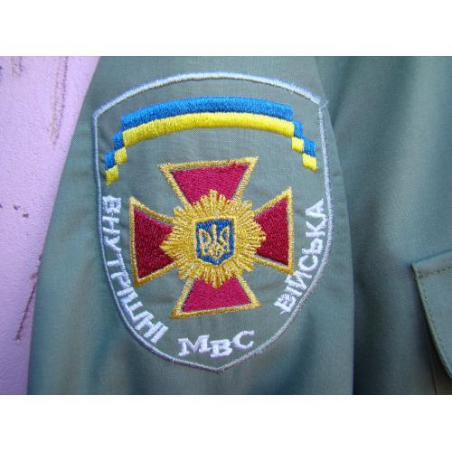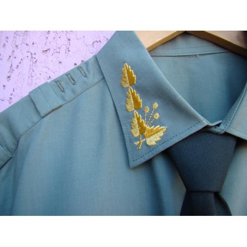 after 1991Рубашка в очень хорошем состоянии, а может быть и новая. Шевроны и веточки на воротнике вышиты. Галстук также с вышивкой, зажим латунный с тризубом. Размер 52, на рост 175-180 см, ворот 44. Нечастая рубашка. В остальном все как на фото.