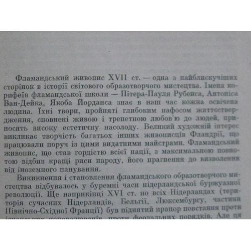 Альбом присвячений фламандського живопису XVII століття. Альбом містить репродукції і оглядову статтю.116с.