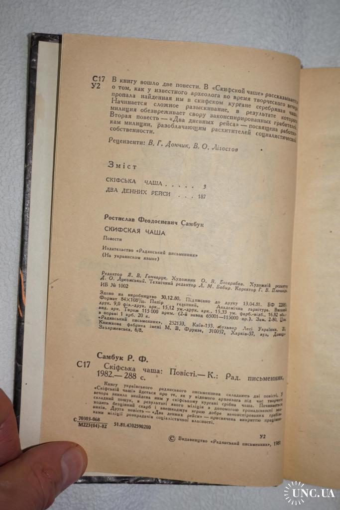 Книгу складають дві повісті. У Скіфській чаші йдеться про те, як у відомого археолога під час творчого вечора зникла знайдена ним у скіфському кургані срібна чаша. Починається складний пошук… Друга повість - Два денних рейси - присвячена викриттю праціваниками міліції розкрадачів соц. власності.