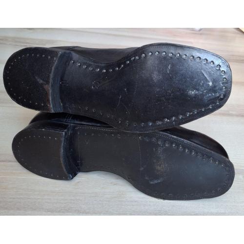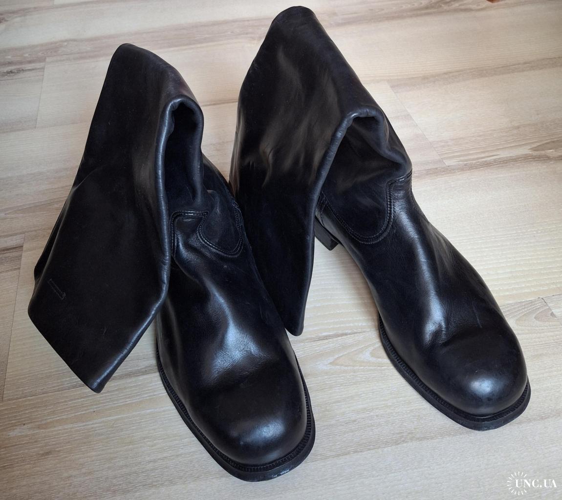 Сапоги яловые офицерские советского производства 1960-х годов. Пошиты из телячьей кожи или шкуры молодой коровы. Цвет − черный. Яловый верх отличается особой мягкостью и прочностью. Подошва двухслойная. Один слой − натуральная кожа, 2-й микропористая резина.