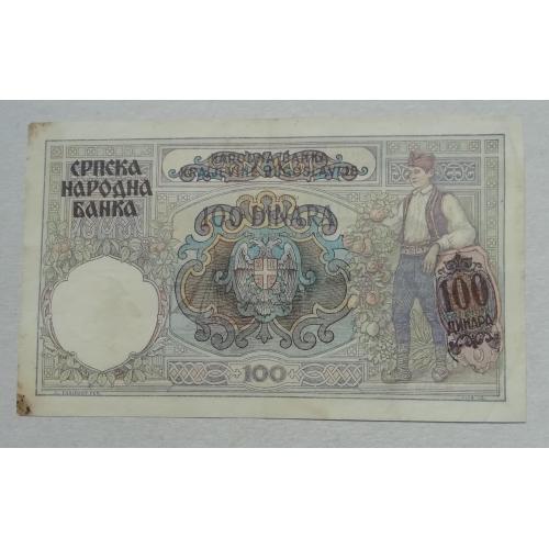 availableСЕРБИЯ надпечатка 100 ДИНАР 1 мая 1941 год на банкноте Югославия