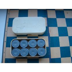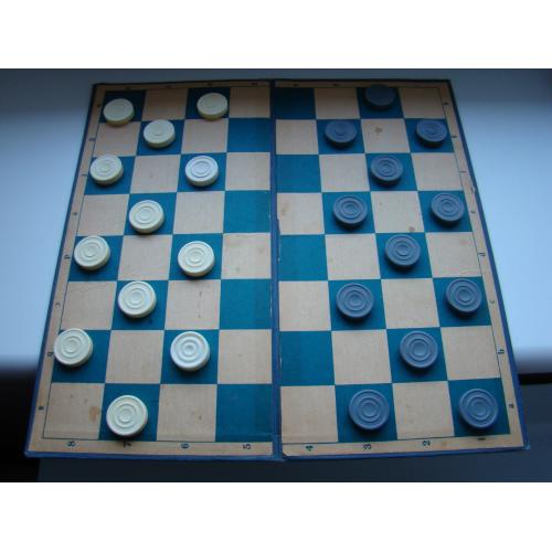 1961-1980Шахматное поле (картон, ткань), размер 35х35 см. Шашки пластик в фирменной коробке. Все времен СССР. В остальном все как на фото.