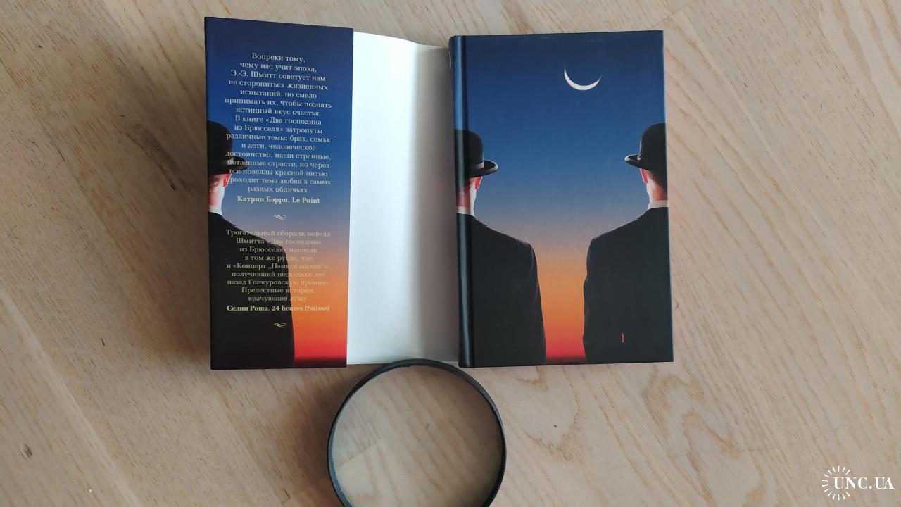 Шмитт Э.-Э. Два господина из Брюсселя.Серия: Азбука бестселлер. Перевод Е. Березина, М. Брусовани, О. Давтян, Г. Соловьева, Н. Хотинская. СПб. Азбука. 2013г. 288с. Суперобложка Твердый, Уменьшенный формат. Цветной обрез