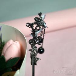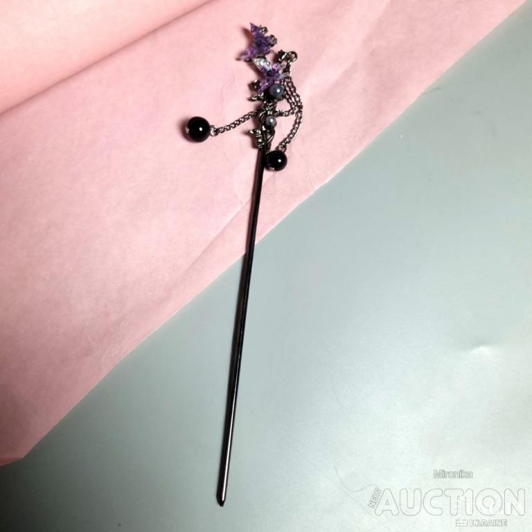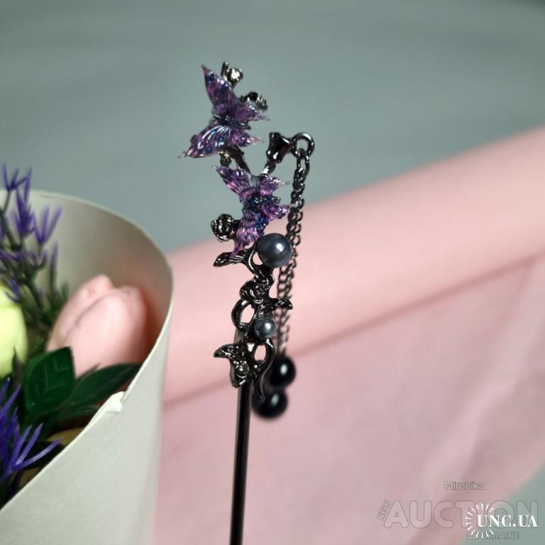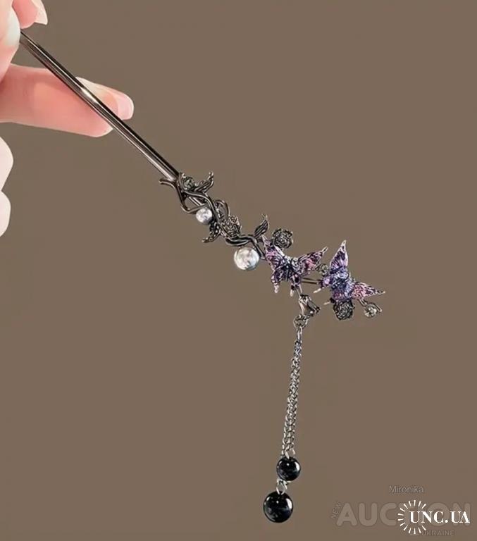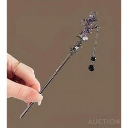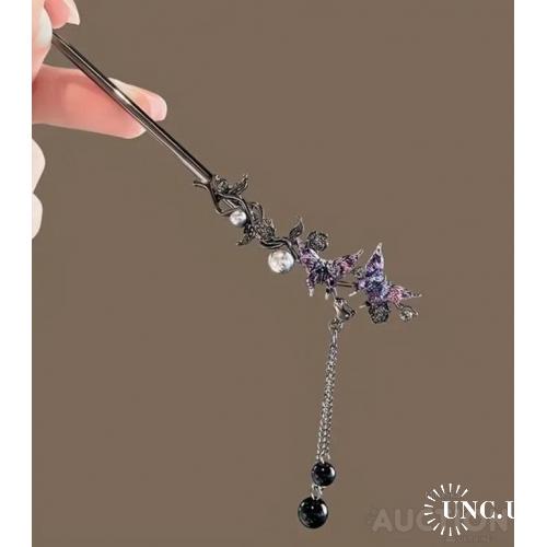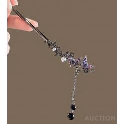 Китайська шпилька для волосся у стилі "Мрійливий фіолетовий метелик" з бахромою, національний тренд стародавнього стилю