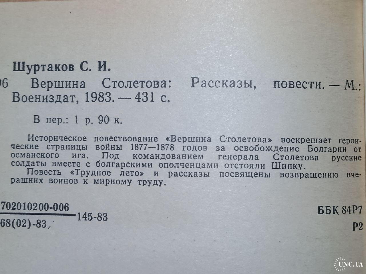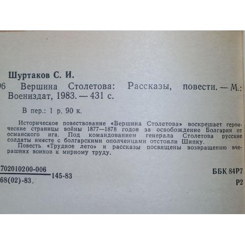 Шуртаков. Вершина Столетова. Освобождение Болгарии 1877-78. Воениздат. 1983 год. В отличном состоянии!