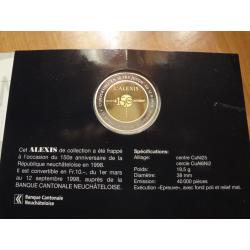 Предистория: в конце 90-х, к юбилею вступления в Федерацию кантонов, каждым кантоном была випущена монета в историческом номинале равная 10 франкам и свободно обращалась на протяжении полугода. Потом по желанию обменивалась банком Швейцарии на франки.