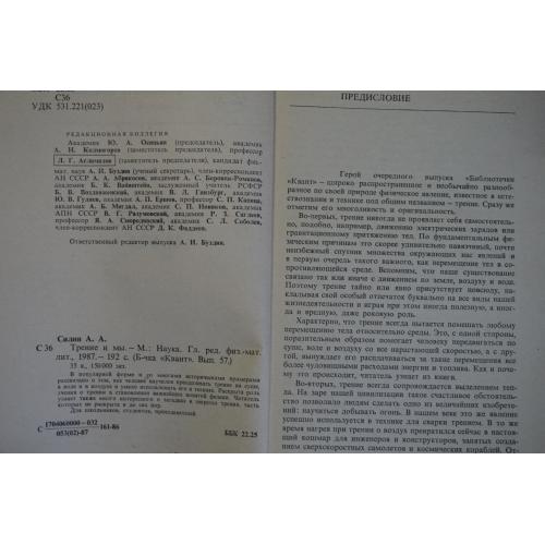 В популярной форме и со многими историческими примерами рассказано о том, как человек научился преодолевать трение на суше, в воде и в воздухе и умело использовать его в технике. Раскрыта роль учения о трении в становлении важнейших понятий физики. Читатель узнает также много интересного о загадках и секретах трения, часть которых не раскрыта и до сих пор. Для школьников, студентов, преподавателей. Вес книги 185 гр.