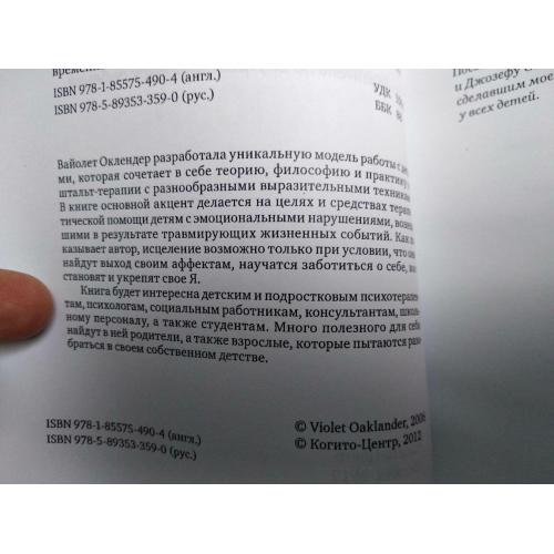 Классический труд выдающегося американского детского психотерапевта Вайолет Оклендер (1927-2021), создавшей собственный психотерапевтический подход для работы с детьми и подростками. Вайолет Оклендер разработала уникальную модель работы с детьми, которая сочетает в себе теорию, философию и практику гештальт-терапии с разнообразными выразительными техниками.