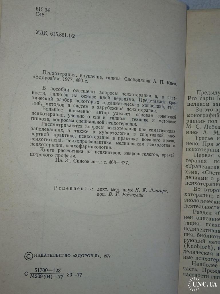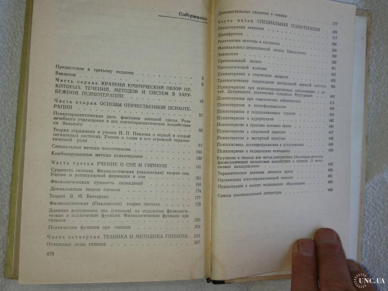 В пособии освещены вопросы психотерапии и, в частности, гипноза на основе идей нервизма. Представлен критический разбор некоторых идеалистических концепций, течений, методов и систем в зарубежной психотерапии. Большое внмание автор уделяет основам советской психотерапии, учению о сне и гипнозе, технике и методике гипноза, вопросам специальной психотерапии. Рассматриваются вопросы психотерапии при соматических заболеваниях, а также в курортологии, в спортивной, экспертной практике, психотерапия в практике военного врача, психогигиена, психопрофилактика, медицинская психология и психотерапия, психофармакология. Книга рассчитана на психиатров, невропатологов, врачей широкого профиля.