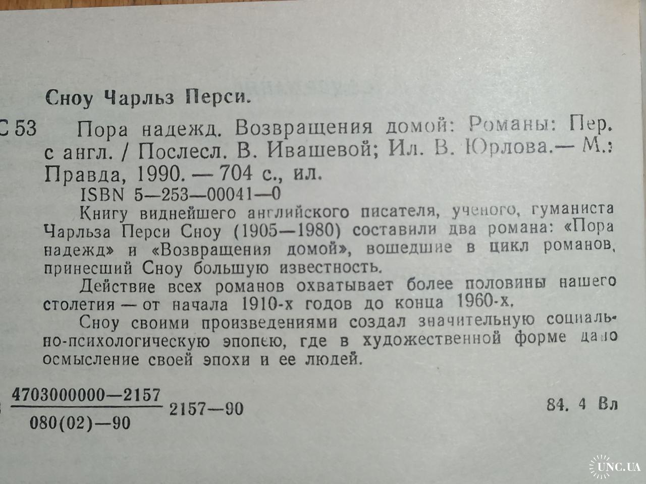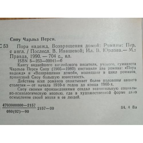 Сноу Чарльз П. Пора надежд. Возвращения домой. Издательство: «Правда». 1990 год. Состояние новой книги. Листы еще склеены после типографской обрезки. Блок открывается с трудом.