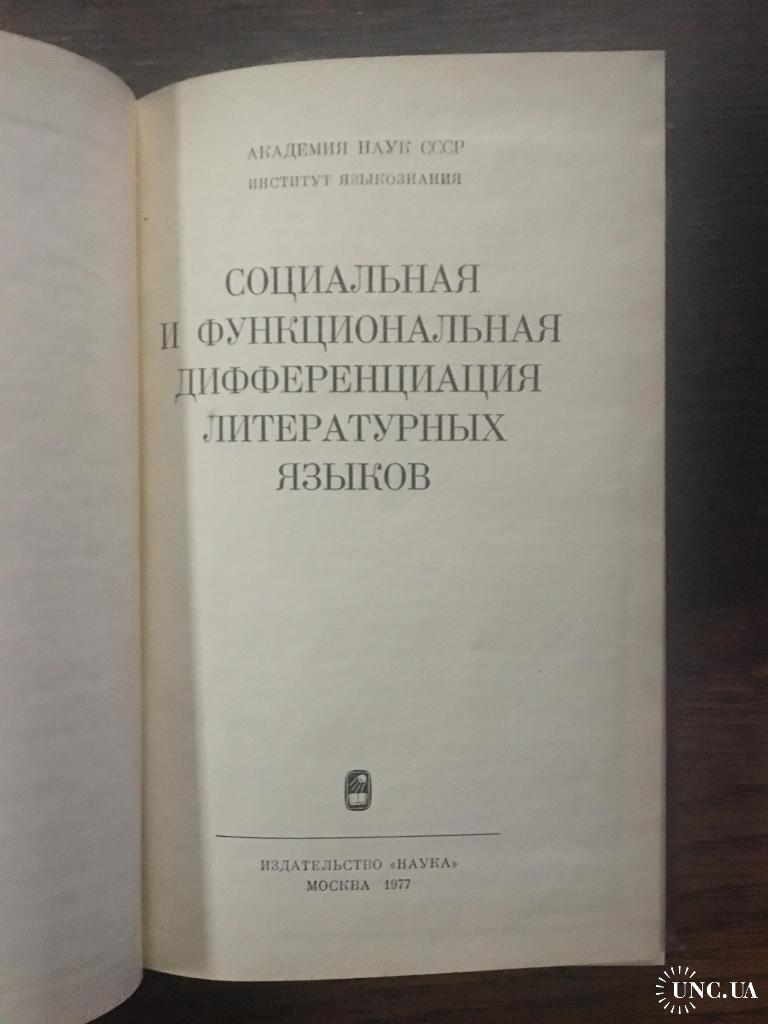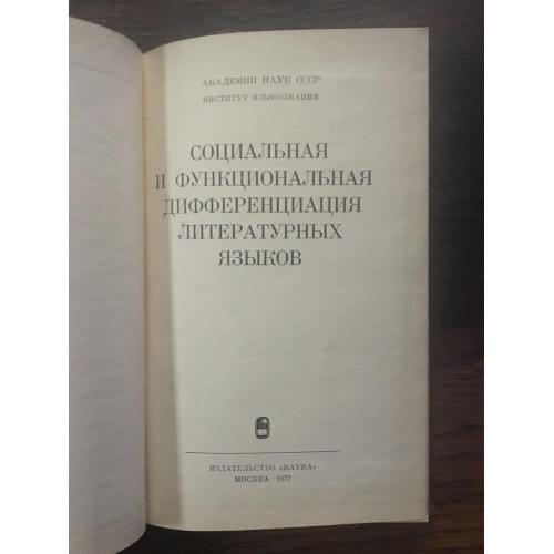Социальная и функциональная дифференциация литературных языков. В. Н. Ярцева. М. М. Гухман. Академия наук СССР, институт языковедения. Издателюство Наука.1977 г.