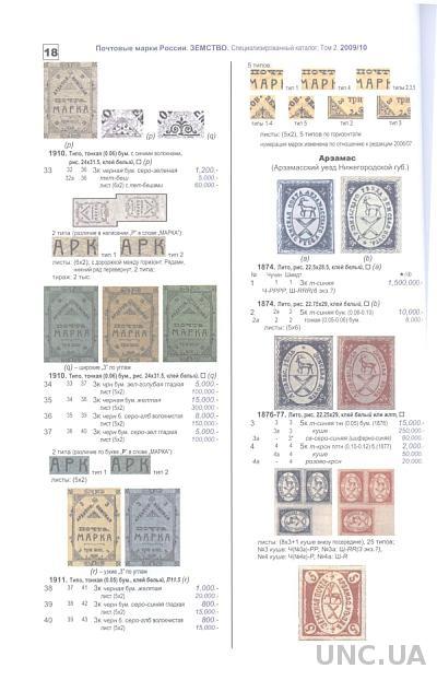 Во втором томе каталога в редакции 2009/10 приводится информация о выпусках земских марок. Для большинства почтовых марок даются пробные сведения о разновидностях по изданиям, типам и отличиям в деталях рисунка.