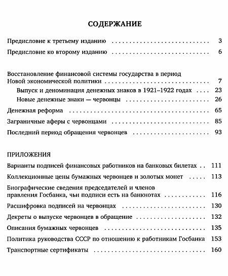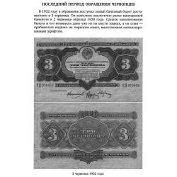 В приложениях приведены варианты подписей финансовых работников на червонцах; коллекционная оценка бумажных и металлических червонцев; официальное и неофициальное описания изображений на червонцах.