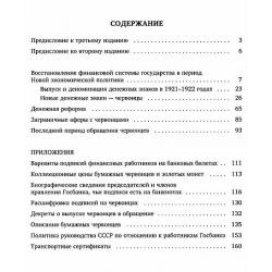В книге описана вся история бумажных и металлических червонцев с 1922 по 1947 год. Помещено свыше 100 иллюстраций, в т. ч. более тридцати ранее не публиковавшихся проектов червонцев (например, 2/10 червонца или 50 червонцев 1922 года).