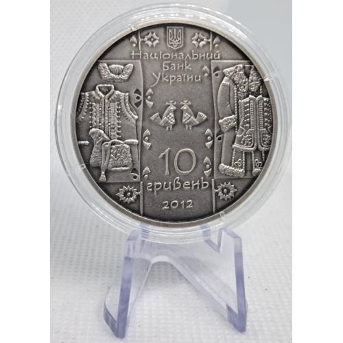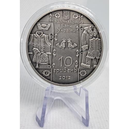 На реверсі зображено майстра-кушніра за роботою, а на аверсі — традиційний український одяг та орнаменти.