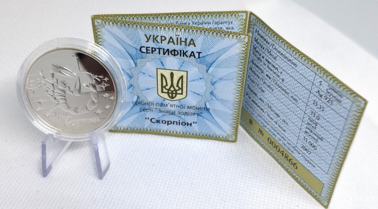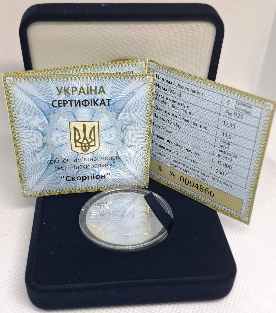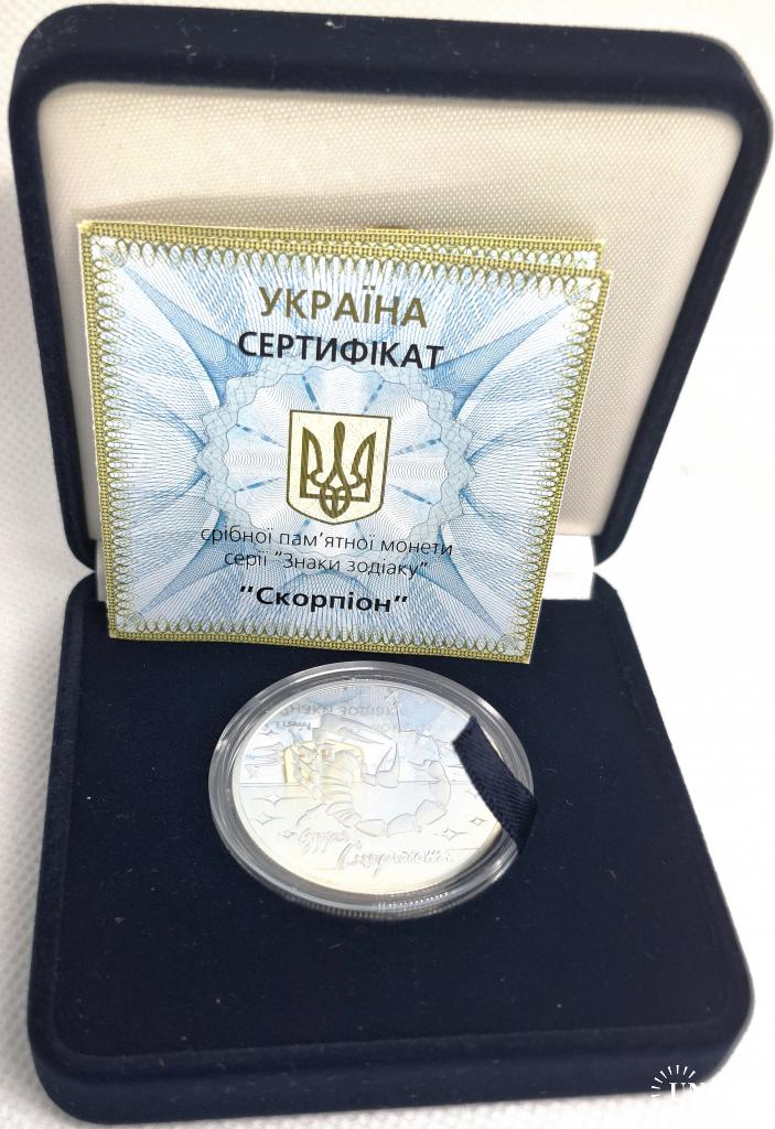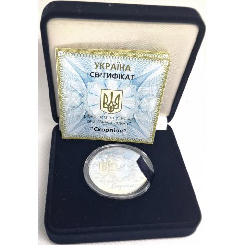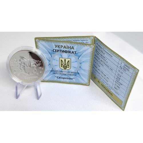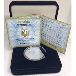 На реверсі монети розміщено стилізоване зображення скорпіона в оточенні зірок, ліворуч від якого - обриси сузір`я, унизу - символ знака зодіаку, праворуч - стилізований напис СУЗІР`Я/ СКОРПІОНА.