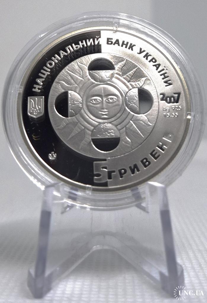 На аверсі монети в центрі круга розміщено стилізоване зображення сонця, ліворуч, праворуч, а також угорі й унизу від якого - чотири освітлені ним кулі, що символізують пори року. Ліворуч від круга - малий Державний Герб України, праворуч - рік карбування монети 2007, позначення металу, його проби Ag 925, маси в чистоті 15,55; по колу монети - написи: НАЦІОНАЛЬНИЙ БАНК УКРАЇНИ (угорі), 5 ГРИВЕНЬ (унизу), а також - логотип Монетного двору Національного банку України.